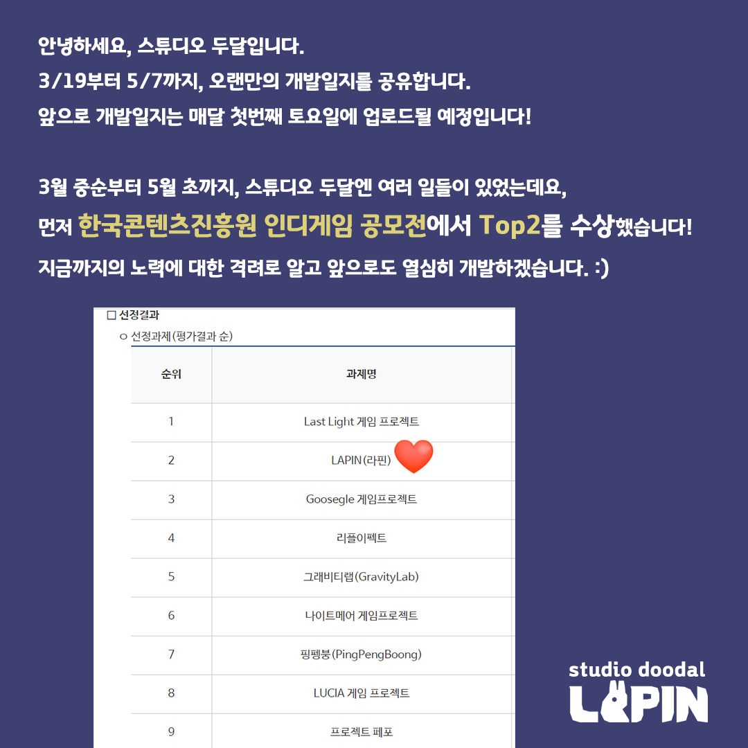 3/19부터 5/7까지, 오랜만의 개발일지를 공유합니다.