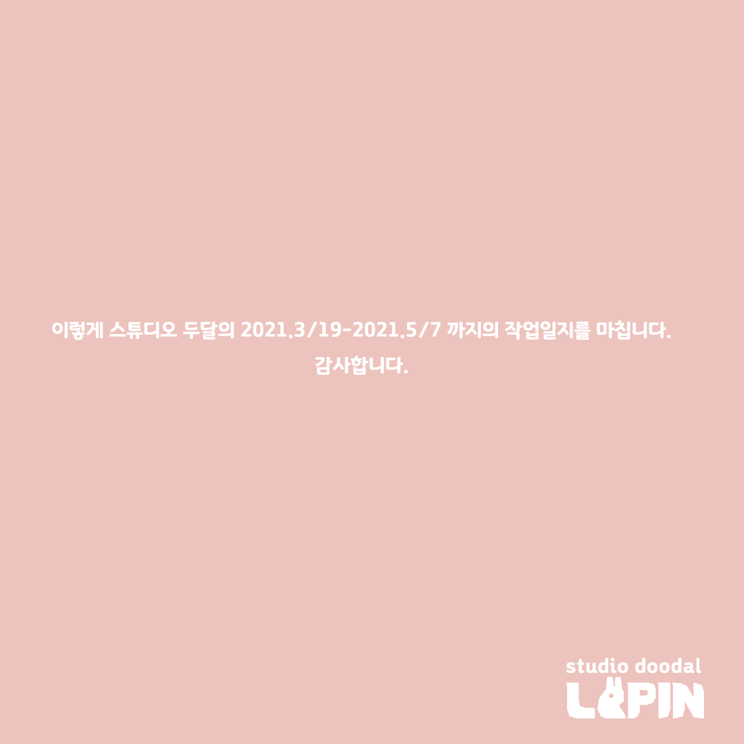 이렇게 스튜디오 두달의 2021.3/19-2021.5/7 까지의 작업일지를 마칩니다.
